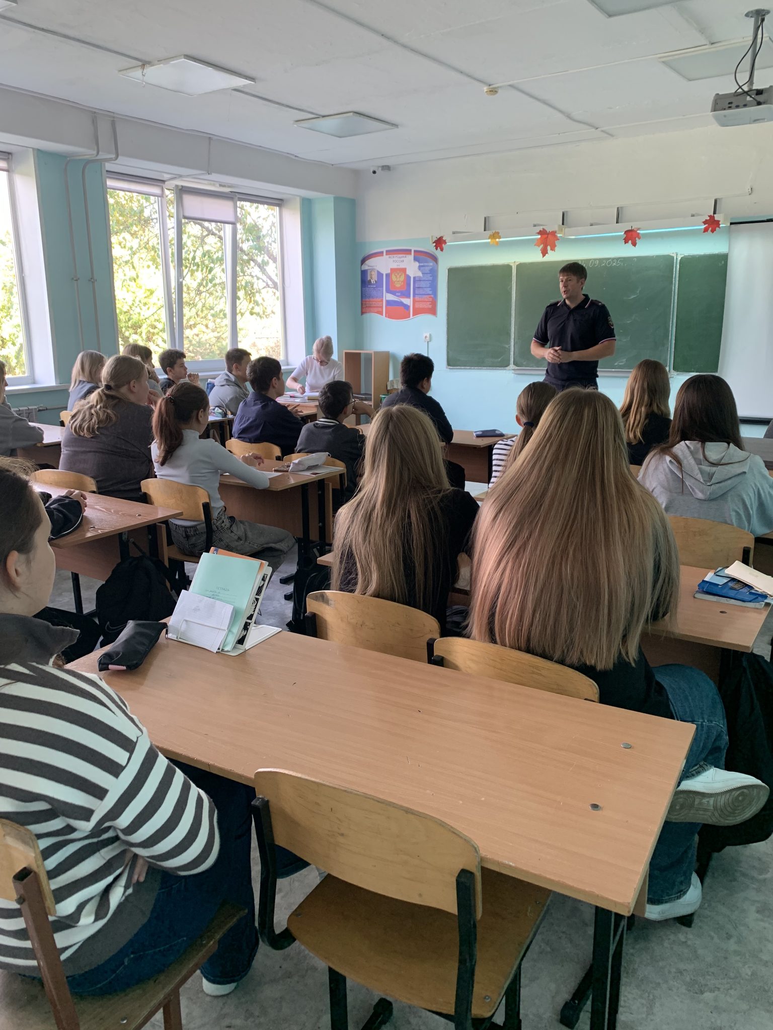 24 сентября 2025 года в рамках проведения Дня правовых знаний в МБОУ «Зыковская СОШ» заместителем начальника отдела МВД России — начальник ОРЛС МО МВД России «Березовский», подполковник полиции Романович Э.В. с обучающимися 7 «А», 7 «Б», 7 «В», 7 «Г», 8»А» и 8 «Б» классов проведены беседы по упреждению совершения общественно-опасных деяний, профилактике правонарушений и преступлений, антиобщественного и агрессивного поведения, в том числе в школе, с разъяснением ответственности за их совершение в соответствии с действующим законодательством. Присутствовало 127 человек.