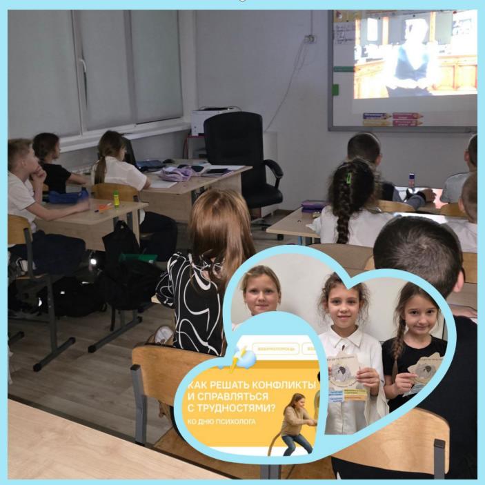 Далее обучающиеся прошли на урок из цикла «Разговоры о важном», приуроченный ко Дню психолога на тему «Как решать конфликты и справляться с трудностями?»