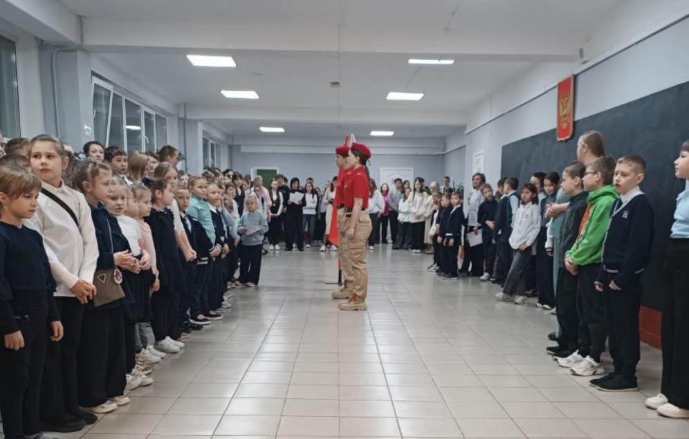 Утро понедельника 8 декабря 2025 года в школе традиционно началось с торжественной церемонии выноса флага и исполнения гимна Российской Федерации.